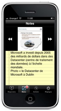 Enfin, si vous souhaitez vous déplacer plus librement pour être plus proche de votre public, vous pouvez transformer votre SmartPhone en télécommande PowerPoint. Inutile de rester à proximité de votre ordinateur pour faire avancer les diapositives ou pour accéder aux commentaires associés. Vous pilotez les deux sur … l’écran de votre téléphone !Plusieurs applications gratuites ou partiellement payantes vous offrent cette possibilité. A titre d’exemple, voici l’écran que j’obtiens avec l’application PowerPoint Remote de Logitec. Il suffit d’installer l’application sur votre smartphone, une autre application sur votre ordinateur et les deux appareils dialoguent par Wifi.